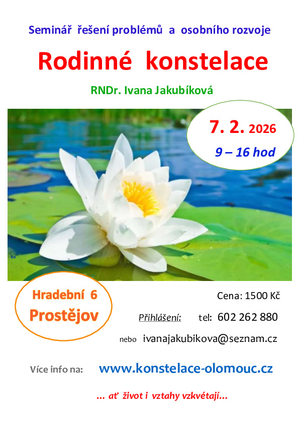 Kapacita semináře je 12 míst, nutné je přihlášení předem: ivanajakubikova@seznam.cz, nebo tel: 602 262 880.